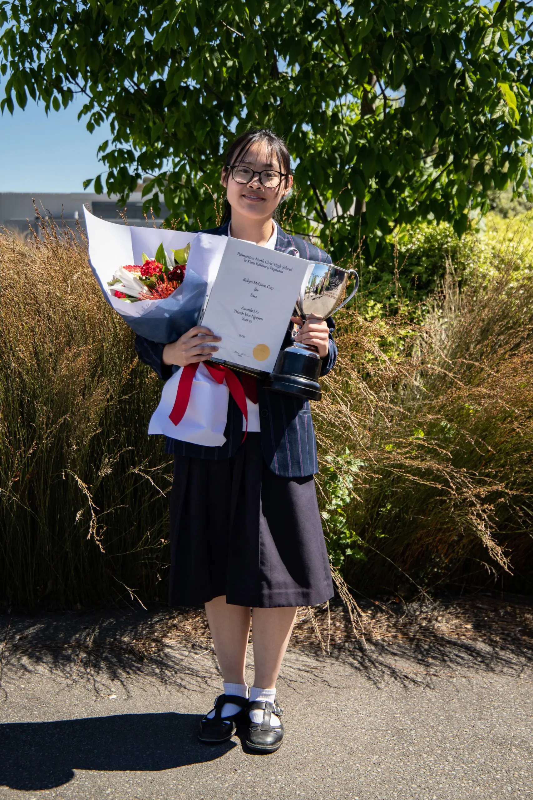 Mình chọn học tại trường Palmerston North Girls’ High School sau khi học hết năm lớp 08 ở Việt Nam vì đây là một môi trường học tập lý tưởng với những giáo viên tận tình. Giáo trình New Zealand không áp lực và rất phong phú. Mình có thể tự chọn các môn tuỳ theo sở thích và công việc mơ ước sau này. Ngoài ra, trường cũng khuyến khích hoạt động ngoại khoá như thể thao và tham gia câu lạc bộ. Với một cộng đồng đa văn hoá, mọi người rất thân thiện, tư tưởng lại rộng mở, mình có thể thoải mái thể hiện bản thân mà không quá ngần ngại điều gì.